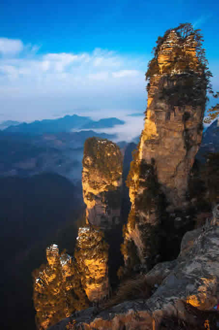 楊家界風光 楊家界索道的運營,不僅拉近了楊家界與武陵源天子山、袁家界、黃石寨景區(qū)的距離,打通進出張家界核心景區(qū)的西部快捷通道,有利于緩解武陵源客流高峰的分流壓力,全面推動武陵源風景區(qū)的“西部大開發(fā)”,而且對于景區(qū)的提質(zhì)升級和自然環(huán)境資源保護具有重大意義。尤其使楊家界雪藏多年的峰墻群奇觀從“養(yǎng)在深閨人未識”到“觸手可及”,對于景區(qū)空間的擴容和完全釋放具有巨大的推動作用。